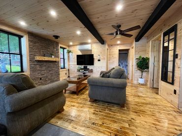 Our newly renovated cabin (2023) still has a rustic feel, but all the comforts of home.